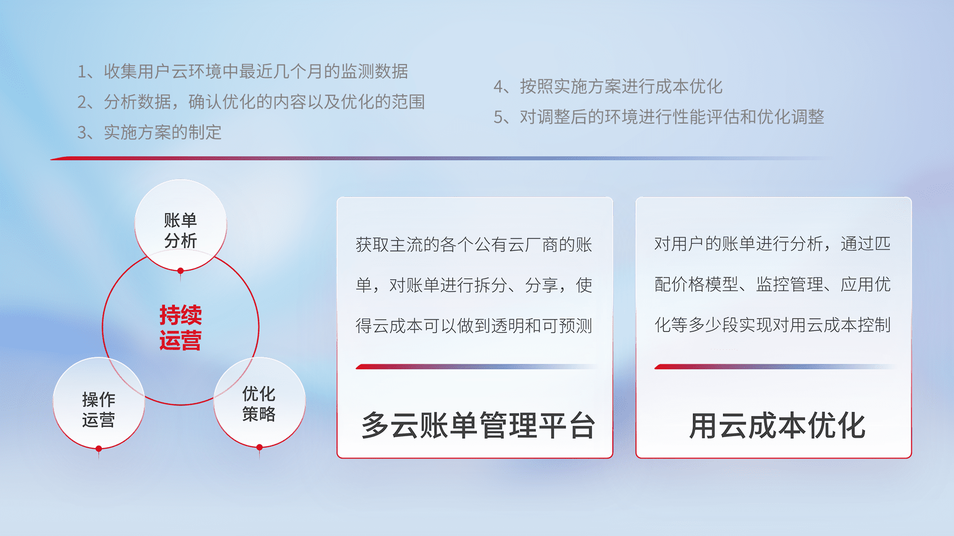 监控业务系统资源开销,,,对资源的消耗精确计量,,,实现费用的透明化管理,,,不断提升资源使用率,,,,调整资源购买方式,,,降低资源费用成本,,,用云成本可预测、、用云费用可优化,,,云资源配额有据可依。。